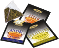 Tea bag wrapped in a metalized hermetically sealed envelope to retain freshness and flaour.